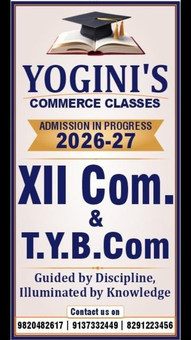 Best Tutorials For Class XII Commerce In Dombivali... Best Tutorials For Class XII Commerce In Domb... Best Tutorials For Class XII Commerce In Dombivali... Best Tutorials For Class XII Commerce In Dombivali When Class XII Commerce kicks in, things start getting real. Concepts become more layered, and board exams begin to shape future goals. That’s why so many students in Dombivali are turning to Yoginis Commerce Classes early on—it’s not just about finishing the syllabus but building confidence in Accounts, Economics, and Business Studies before the pressure builds up. Students appreciate how the classes stay aligned with the board curriculum while also including regular tests and guided revision. It's this steady pace and support that help them feel less overwhelmed. Missing out on the right kind of help at this stage could mean playing catch-up later—so acting early makes all the difference. Call or visit us today to get your child enrolled in a result-driven coaching environment.